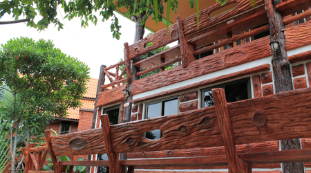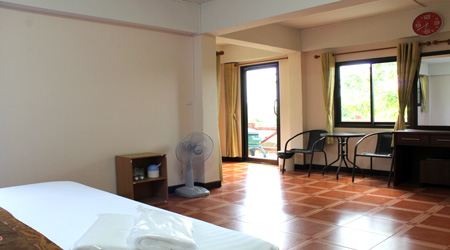 ระเบียงหน้าห้อง ราคา 1800 บาท ต่อคืน สำหรับ 3 ท่าน ต่อห้อง พร้อมอาหารเช้า